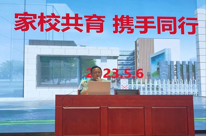 随后,德育副校长杨庆吉以“家校共育,携手同行”为主题和各位家长探讨了如何积极调控情绪,坚持正向沟通,建立良好亲子关系等问题。他分别从以下几个方面给家长进行了详细介绍:首先,从稳定情绪入手,引导家长理性分析孩子学习态度和学习方法,多多关注孩子的努力程度。其次,在理性分析之后,鼓励家长积极引导孩子从短期目标至长期目标,循序渐进地树立目标。最后,提出让孩子们从小事着手,立即行动。在谈到如何建立良好亲子关系时,他分别从温和而坚定的态度、亲近是听从的前提和正向沟通是目的等三个方面详细引导家长与孩子通过沟通建立良好的亲子关系。最后,他希望家长多陪伴,为孩子们及时提供必要监督与维护,并且以身作则,言传身教的为孩子们创设和谐融洽的家庭氛围。