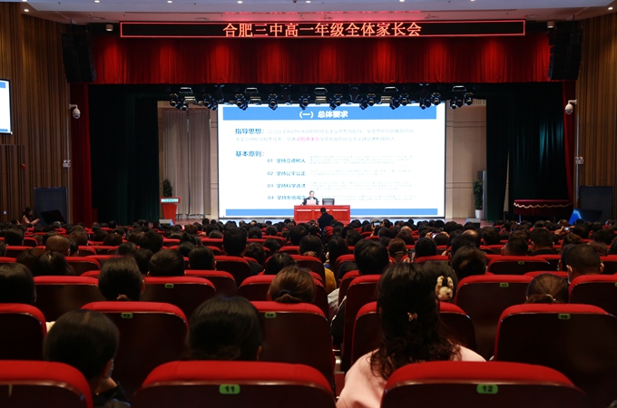 活动伊始,教学副校长陈卓代表学校向各位家长的到来表示热烈欢迎。他首先向各位家长介绍了新高考背景下的高考模式、高考内容、高考时间及高考科目等方面的变化。接着,从高考科目变化、合格性考试与选择性考试区别、次选科目赋分办法及招录方式新变化四个维度向大家详细阐述新高考的新变化。针对当前家长普遍存在的疑问,他提出生涯规划探方向、高校限科查要求、优势学科定组合的新高考选科“三步法”。通过具体分析,陈校提出当前安徽新高考三大具体变化为物理和化学比重大大提升,政治地位的上升。他详细分析了当前新高考历史选科存在的误区,强调选择有时大于努力,一定要帮助孩子认真选择最适合自己的科目组合。最后,他详细介绍了2022级选课走班情况统计及教学班安排,还就选科选课基本原则和未来选科走班情况作进一步说明。