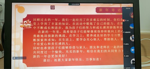 “云端”相聚,共话成长,心怀希望,笃行不怠。线上家长会依然阻挡不了家校沟通的热情,家长们认真倾听,并与老师们积极互动,共同为孩子们度过健康、充实、快乐、安全的寒假生活而努力。