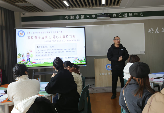 为进一步凝聚家校教育合力,增强亲子间的沟通与理解,营造和谐的家庭氛围,助力学生更好地开展高中阶段的学习与生活,12月13日我校举办了“我与家长共育人”百场家庭教育巡讲暨2024年秋季学期家长学校第三期专题活动。