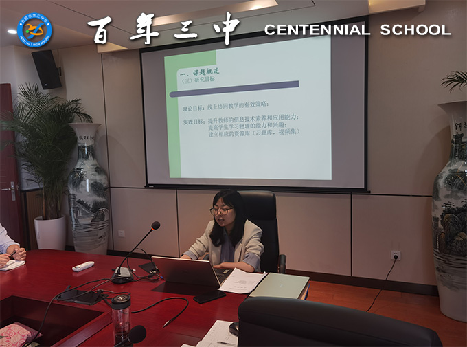 第三位作报告的老师是物理组的吴小艳老师,她所负责的课题是由学校物理组与信息技术组合作开展的课题,她从课题概述、阶段性成果、后期主要研究工作、存在的不足之处与今后努力的方向等四个方面介绍了课题的开展情况。
