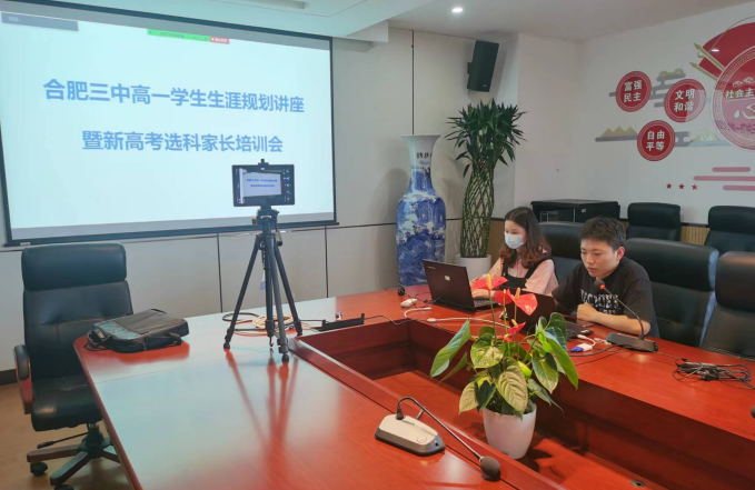 为了促进学生的生涯发展认知,指导学生科学选择科目。4月27日,合肥市第三中学高一级部再次为高一年级学生开展了选课指导讲座活动。此次讲座邀请科大讯飞课改讲师吴锐主讲,吴老师围绕“新高考最新选课分析”这一主题,与各位同学、老师直面生涯与选科的现实挑战,帮助学生作出更合理的选科抉择。本次讲座因疫情采取了线上形式,高一年级全体同学、老师及部分家长在线观看。