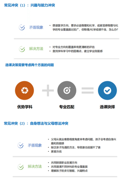 新高考选课是一个综合性极强的工作,涉及到学生的学科优势、学科兴趣、专业兴趣、职业理想,还要考虑高校选考要求、社会发展、家庭环境等诸多因素。大量课改先发地区的经验告诉我们,学科优势与专业匹配是选科决策最重要的两大因素,缺一不可。面对兴趣与能力的冲突、自身想法与父母想法的矛盾、学科优势不明显等情况时,吴老师给出了科学合理的建议。