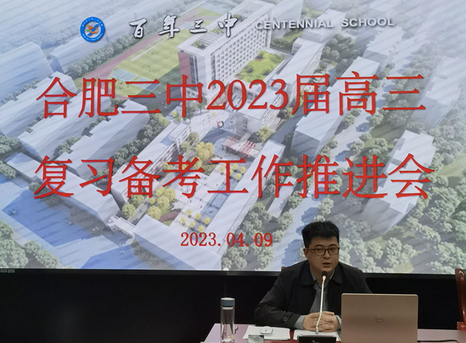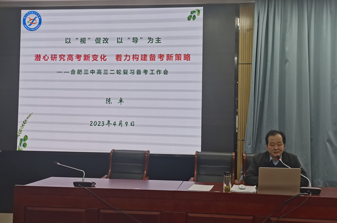 会议第二项议程,陈卓副校长作“潜心研究高考新变化,着力构建备考新策略”主题讲话。他结合合肥市教科院对三中高三工作视导情况和教育部适应性检测的调研纪要,对高三二轮、三轮复习备考工作进行指导,提出了明确而具体的要求。陈校长提出,高三后期的复习备考工作必须要细抓落实,抓住关键,做到科学有效;要回归教材,避免题海,将明确具体的目标、有力的答疑解难、科学高效的方法结合起来,培养学生自主构建知识、合作探究问题和主动归纳总结的能力;要研究、调试学生的心理状态,引导学生平稳度过高原期;要加强和家长的沟通交流,营造和谐的家庭氛围和舒适的家庭环境,指导家长做好支持工作。