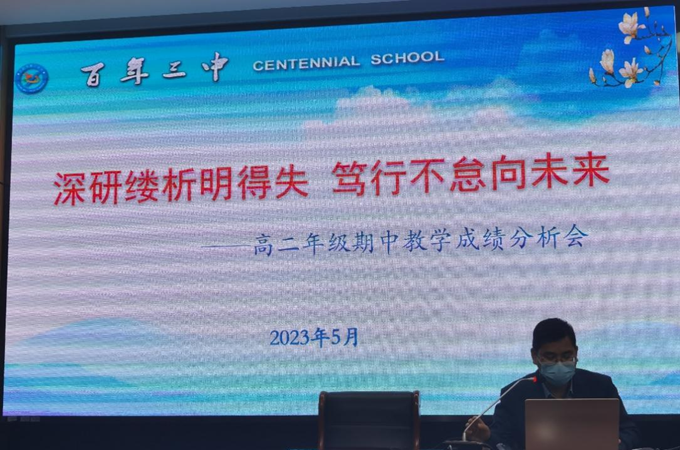会议伊始,郑书建主任对本次期中教学检测情况进行分析。他从全局角度细致分析学生学情,对结果多维度科学评价,指出数据中反映的需要给予关注的几方面问题,让与会老师结合实际教学情况对各自班级的学情有进一步了解。并再次表达了对高二年级勤奋工作的老师们的认可和感谢,鼓励老师们继续坚持正确的方法,争取接下来取得进一步的突破。