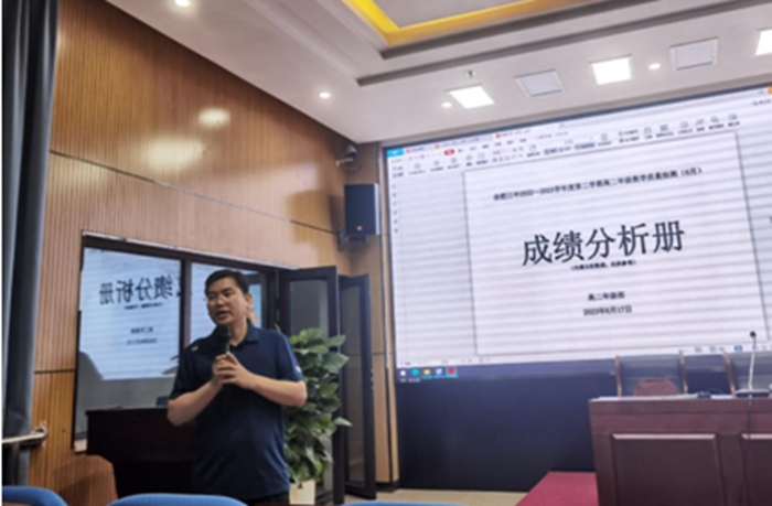 会议第一项,孟主任对本次教学质量结果进行细致详实的分析。他汇报了检测的整体情况,对本次考试进行了多维度科学评价。接着他分析了学生当前的学情,指出了需要给予关注的几个方面的问题,让与会老师结合实际教学进一步了解所带班级和学生情况,积极优化举措,提高教学的针对性和有效性。