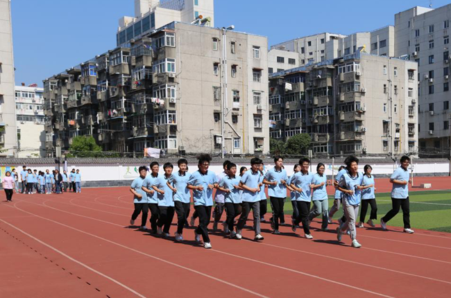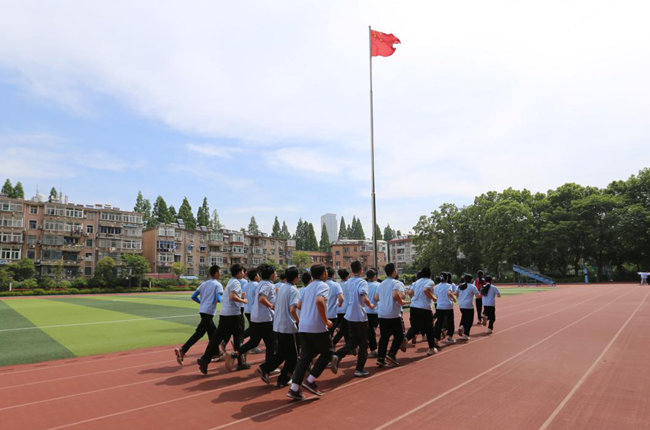 比赛开始前,束传海老师宣读了评分标准及奖项设置,并对比赛提出了具体要求。14个班600多名学生在跑道上跑圈,气势恢宏。他们身着校服,浩浩荡荡,气贯长虹。各班同学纷纷以最好的精神状态投入比赛,绽放出青春的风采。一时间,各种响亮激昂的口号声此起彼伏,响彻操场,让他们时刻铭记自己是班集体的一分子,要为班集体的荣誉争光。