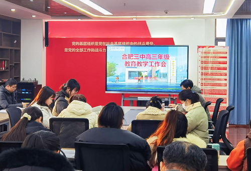 为了全面分析高三教育教学现状,促进教育教学工作有序开展,明确复习备考方向,2023年12月27日,合肥市第三中学高三年级召开了月度教学工作会议。会议由高三年级部主任郑书建主持。