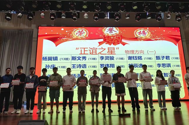 大会在全体师生庄严肃立同唱国歌中拉开帷幕。少年不负春光好,心似骄阳万丈光。本学期开学以来,在高二年级教师求真务实、卓有成效的辛勤教导下,同学们刻苦学习、奋力拼搏、全面发展、健康成长,涌现出一大批刻苦钻研、奋发向上、热爱集体、文明自律、进步显著、全面发展的优秀学子。会上,高二年级部对高二年级“正谊之星”“进步之星”“君尧之星”进行了表彰,在振奋人心的乐曲声中,各班班主任为获奖的学生颁发奖状。
