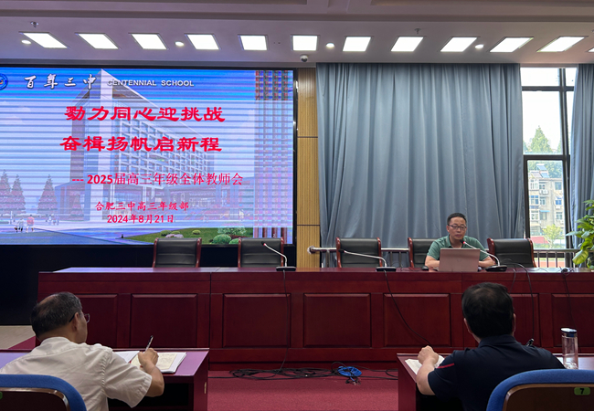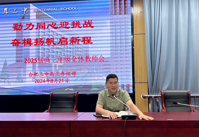 高三年级部教学委员卫骏峰结合详实的数据,从横向和纵向角度全面展示了本届高三学生的学习情况,并对后期教育教学工作提出针对性建议和改进措施。高三年级部主任蒋自路详细阐述了2025届高三备考方案,明确了备考的目标和任务,制定了严谨的教学计划和复习举措:进一步优化课堂教学,提高教学实效;培养学生的自主学习能力,引导学生主动式学习;加强班级文化建设,营造良好的学习氛围;关注学生的心理变化,让学生以积极的心态迎接高考挑战等。