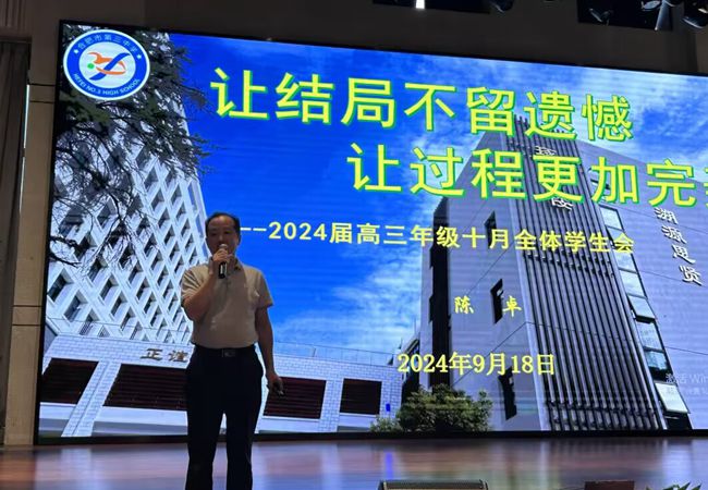 副校长陈卓给全体学子带来以《让结局不留遗憾,让过程更加完美》为主题的精彩发言。他首先带领同学们展望明年“六月之后”的美好愿景,激励着每一位学子为了这个目标而奋力拼搏;强调了“相信自己”的重要性,在高三这一年的艰苦征程中,虽然会遇到各种困难和挑战,但只要相信自己的能力,坚定自己的信念,就没有克服不了的难关;鼓励同学们勇敢地追逐自己的梦想,以梦为马,不负韶华,在高三的岁月里,用汗水和努力去浇灌梦想之花;关键在于“重在落实”,仅有梦想和决心是不够的,要把每一个学习计划、每一项任务都切实落实到行动中,从认真上好每一堂课、做好每一道题开始,一步一个脚印,踏踏实实地为高考做好准备。