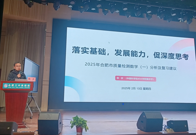 最后,合肥市质量检测命题组核心成员、中科大附中张庆老师以《落实基础,发展能力,促深度思考》为主题,从命题想法、考试成绩、数据分析、试题解读等方面对2025年合肥市第一次质量检测进行了全面而细致的分析。