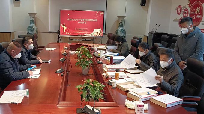 检查验收组领导及专家随后参照平安校园创建达标要求,逐条逐项对我校自查自评汇报材料的进行了梳理,并综合检查了学校食堂、保健室、心理辅导室、运动场以及危化品室,对我校消防安全、疫情防控、校园欺凌、防溺水、交通和校园周边环境等各类安全隐患的治理做评估审定。