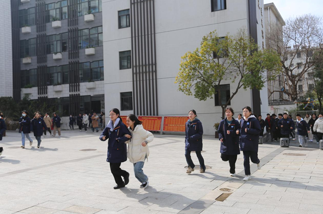 26日上午9点30分,随着广播声响起,全校师生迅速有序地按照逃生路线向学校操场紧急疏散,在各教学楼和校园通道上由疏散引导员负责秩序维护。演练过程中,全员动作规范、配合到位,快速撤离到安全地带。各班主任立刻清点人数,并逐级进行汇报。