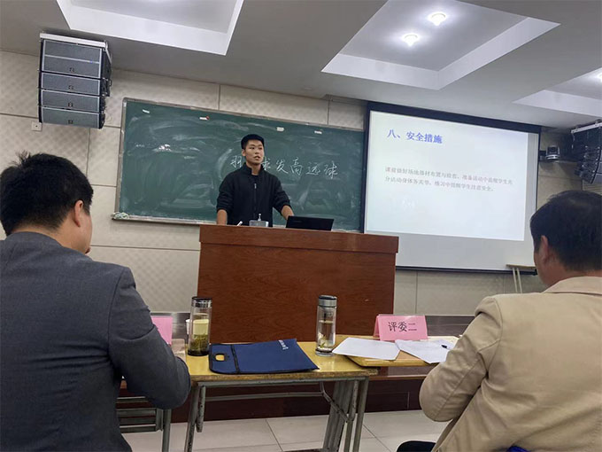 会议第三个议程,是明确本课题的单元教学设计与课时教学设计及教学重难点内容,并将任务进行细化分配,由陈伦钦老师负责撰写单元教学设计与课时教学设计模块,林静敏老师负责课堂教学模块,陈磊老师负责说课模块,罗坤老师负责作业设计模块。同时,要严格结合“三新”、学生实际情况及本次课程教学内容进行教学设计,经过激烈的讨论后,拟定本课题教学重点为起跳腿充分蹬伸,摆动退积极向前上方摆动,教学难点为起跳腿积极向摆动腿摆动。