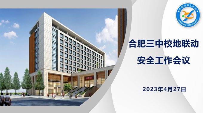 为落实党的二十大关于教育深化改革的方针政策,贯彻习近平总书记关于安全工作的重要指示精神。合肥市第三中学牢固树立安全意识,未雨绸缪提前谋划,坚持问题导向,主动寻求突破,邀请合肥市市场监督管理局食品监管处处长汪永林、庐阳区逍遥津派出所所长邓欣冉、庐阳区交警支队百花中队队长朱明敏、庐阳区逍遥津街道义仓社区书记戚海娟、庐阳区消防救援大队副大队长班新焱、庐阳区逍遥津街道城管部部长何章辉来校探讨校园安全工作。