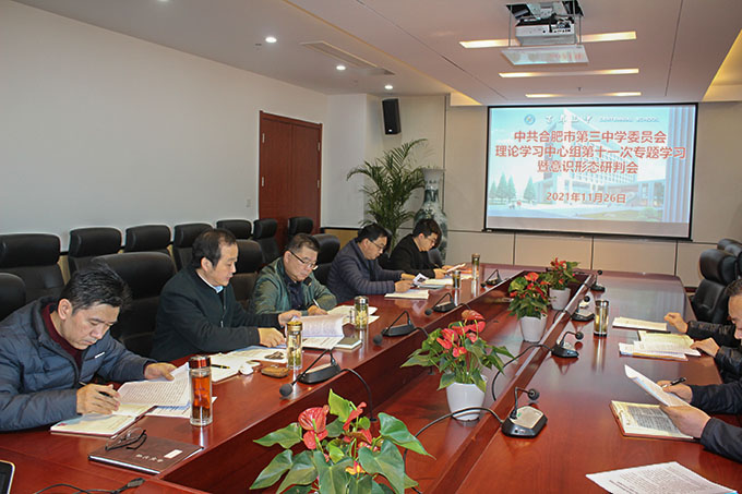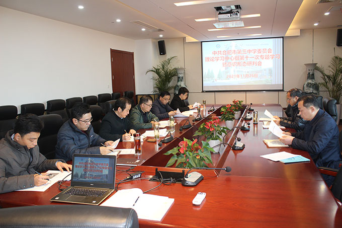 2021年11月26日上午8点30分,点点手机版下载官网app党委在校君尧楼九楼会议室召开第11次中心组学习暨意识形态研判会。党委班子全体成员及各党支部书记参加,会议由党委书记马剑主持。