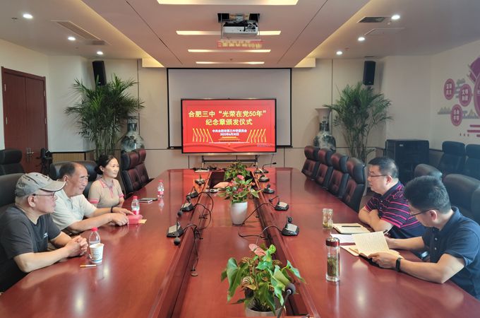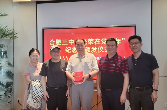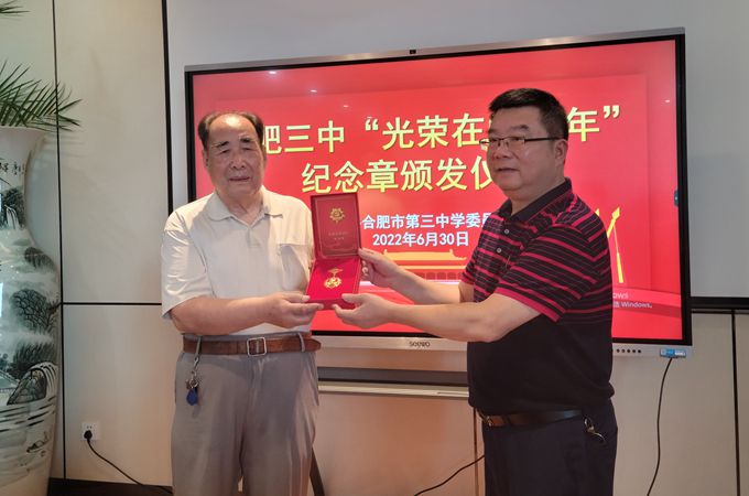 杨继琨老师1972年入党,1977年来到点点手机版下载官网app工作,一直从事班主任、语文教学和教研组长工作。为人谦和、工作勤恳、业务精湛,在教育教学生涯中作为专家级教师,先后参与中考试卷命题、全国语文会议研讨活动,带领语文教研组获得合肥市先进教研组等荣誉称号,为点点手机版下载官网app语文组的发展做出了重要贡献。杨老师表示,通过今天颁发奖章,深刻感受到党中央对老党员的关怀,感谢校党委的关心,自己无比激动和自豪。回顾自己的三中的岁月,光荣照耀一生,虽然已经退休,仍然要做好自己工作,不忘入党的初心和使命。