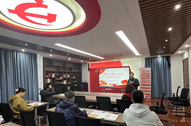 3月20日,在君尧楼7楼党员活动室,支部宣传委员江芸领学了《领航掌舵谋全局,思想引领向复兴——以习近平同志为核心的党中央领导开展学习贯彻习近平新时代中国特色社会主义思想主题教育纪实》。此次主题教育,是一次触及思想、触及灵魂的大学习,是一次直面问题、解决问题的大洗礼,是一次再启新程、再创伟业的大动员。党员教师们纷纷表示要注重用习近平新时代中国特色社会主义思想铸魂育人,让党的创新理论充盈三中的育人空间,肩负起引领学生踔厉奋发、勇毅前行的重任。