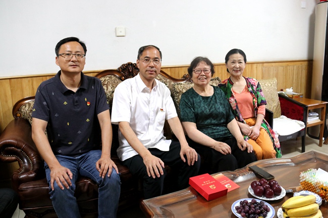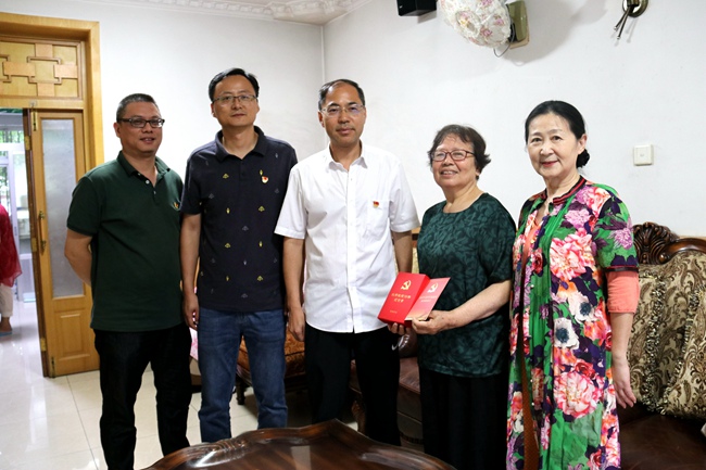 2024年6月28日上午,点点手机版下载官网app党委书记马剑、副校长杨庆吉等一行走访慰问退休老党员马金芬,为她颁发“光荣在党50年”纪念章,并致以亲切的问候和崇高的敬意,把党组织的温暖送到老党员的心坎上。