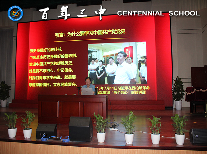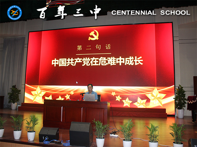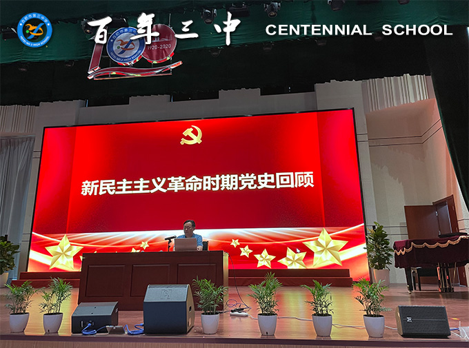 2021年5月24日下午5点,点点手机版下载官网app校长毛晓斌在校君尧楼正谊会堂以“厚植家国情怀,立志民族复兴”为主题为第三党支部党员和高一年级学生们上了一堂党课——新民主主义革命时期党史回顾。