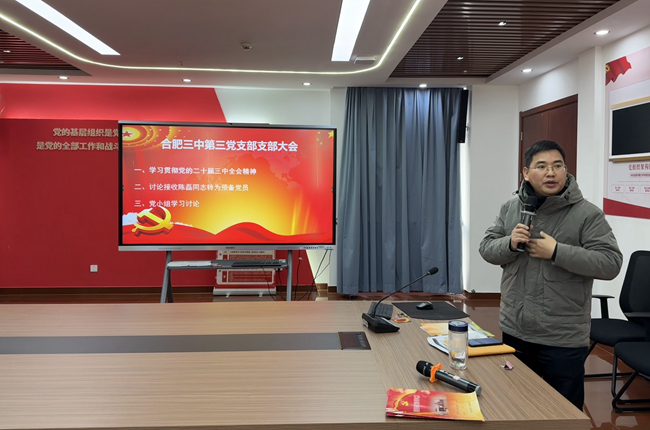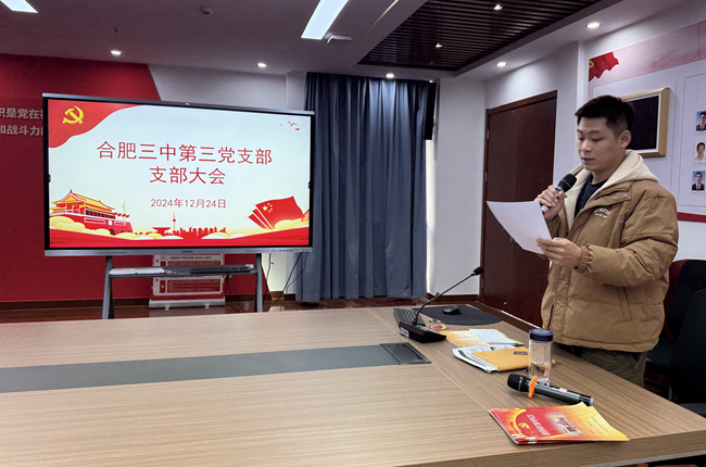 为加强党组织建设,提升党员思想觉悟,点点手机版下载官网app第三党支部于2024年12月24日下午在党建活动室召开支部大会。本次会议主要包括学习贯彻党的二十届三中全会精神以及讨论发展对象转为预备党员事宜,会议由第三党支部书记郑书建同志主持。