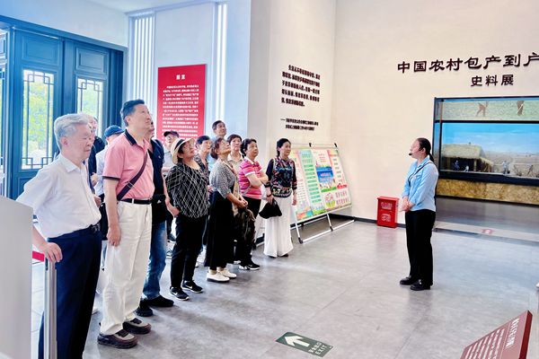 同志们首先来到活动第一站--小井庄。小井庄位于肥西县山南镇西南,是中国农村包产到户发源地,安徽省历史文化名村,省市县新农村示范建设点。退休党员们在讲解员的带领下,参观了小井庄中国农村包产到户纪念馆,从面临困局,奋力破局,艰难开局,开创新局四个方面了解小井庄包产到户的改革历史,感受“敢为人先”的时代精神和改革开放的艰辛伟大。