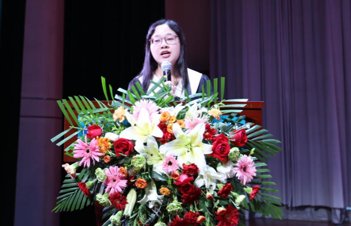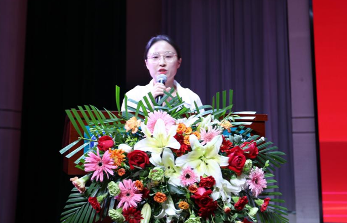 优秀教师代表宋玉杰发言,她表示自入职以来,见证了学校近年来的蓬勃发展和变化、体会到了学校这个大家庭的温暖和友爱、收获了与学生们共同成长进步的喜悦和快乐,同时也更加坚定了要忠于党的教育事业,传承文明,启智求真的决心。