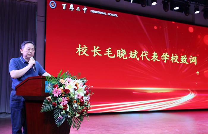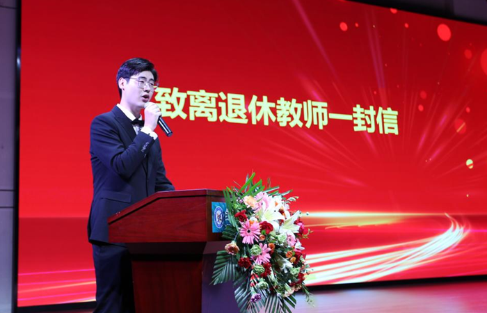 张盖茨老师宣读致离退休教师的一封信,对曾为三中教育的发展做出无私奉献和卓越贡献的退休教师表示由衷感谢。