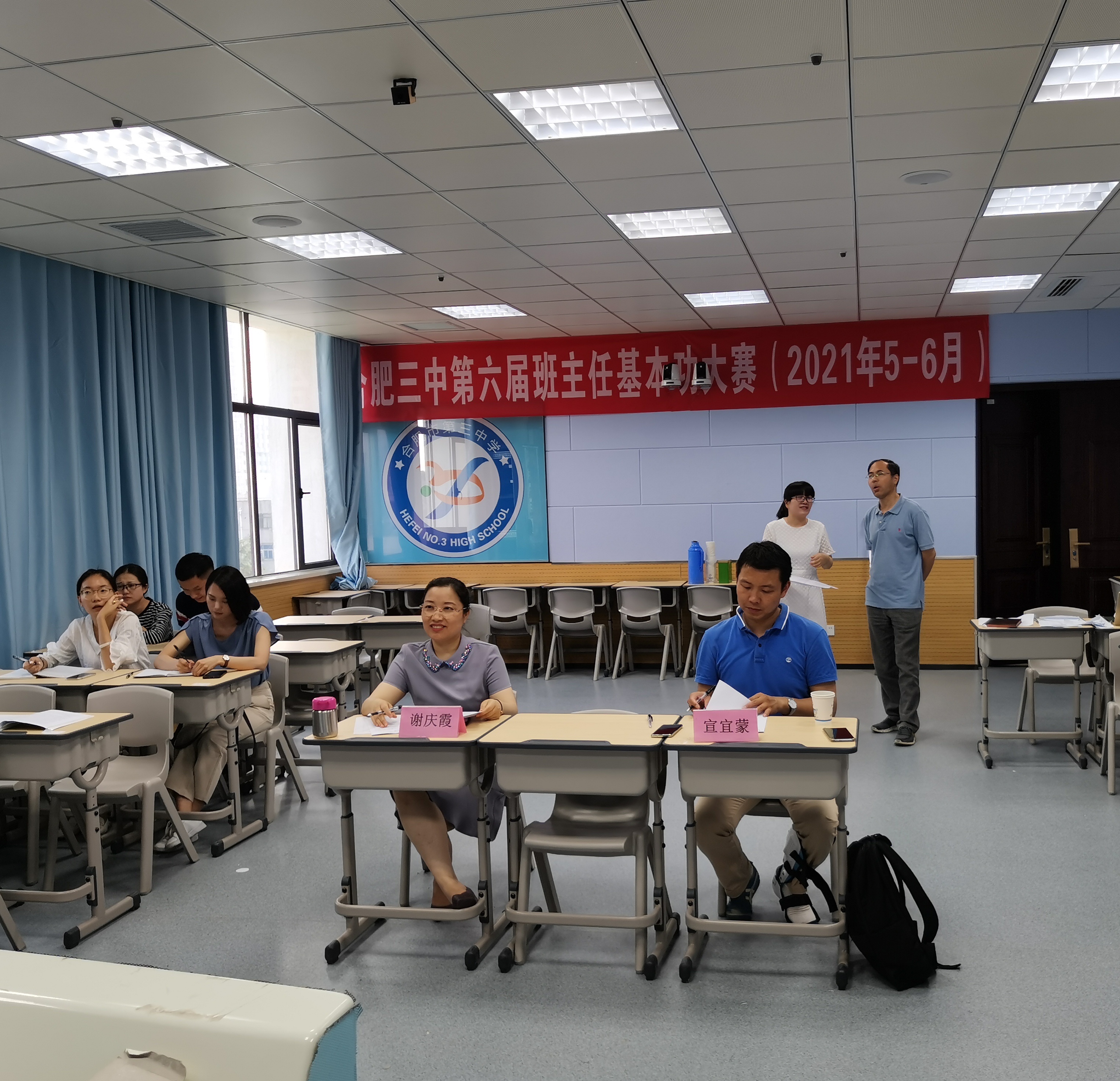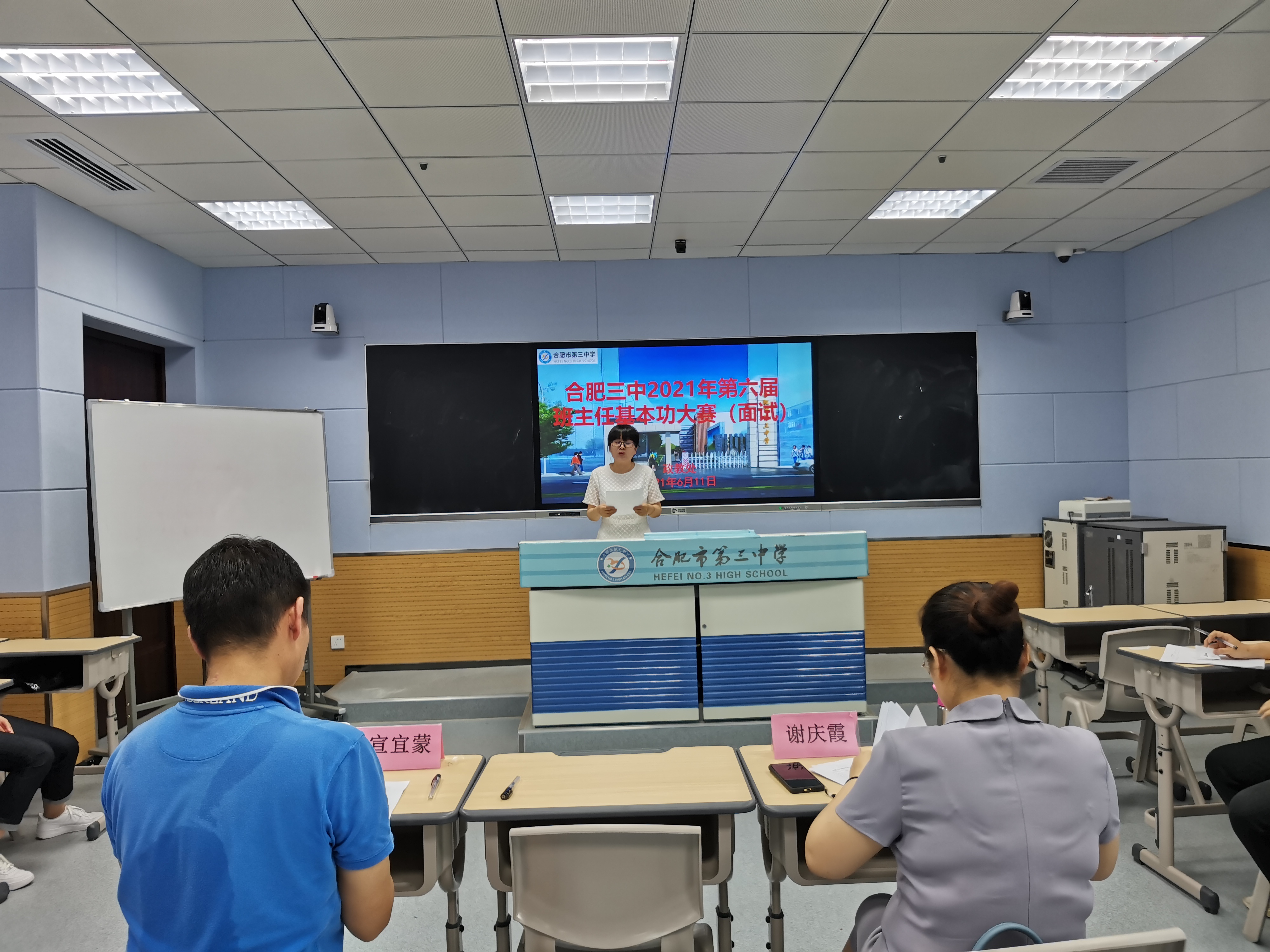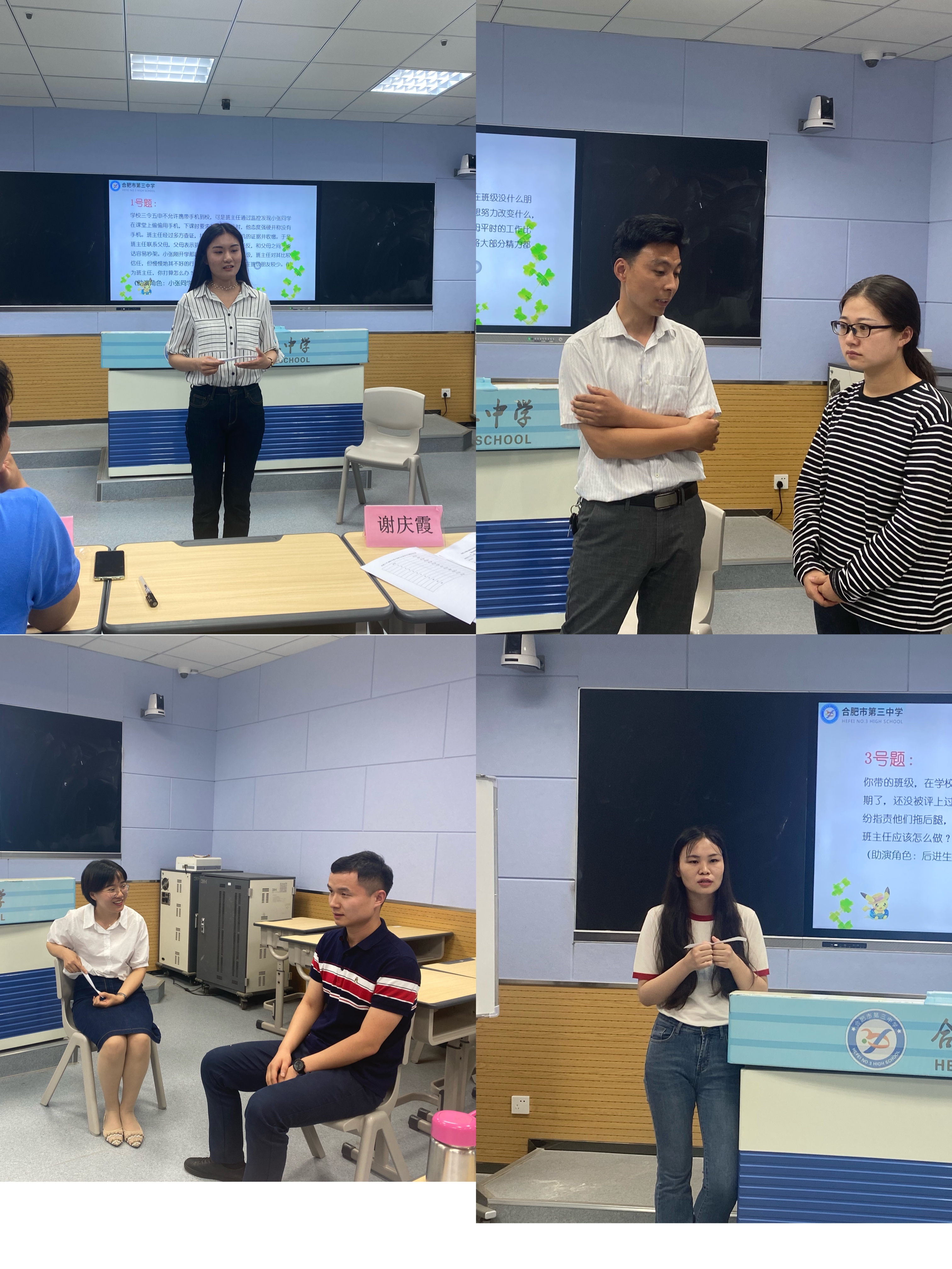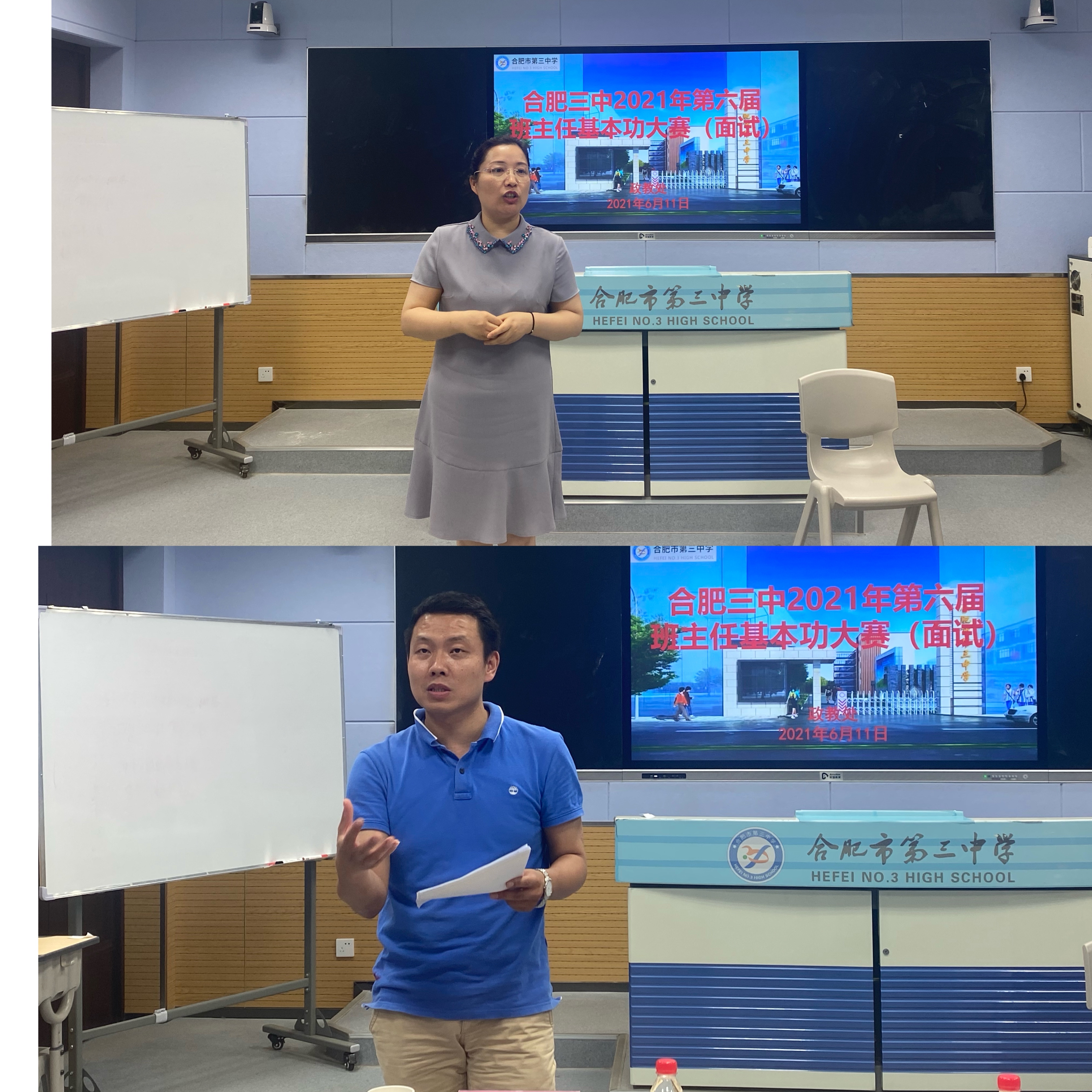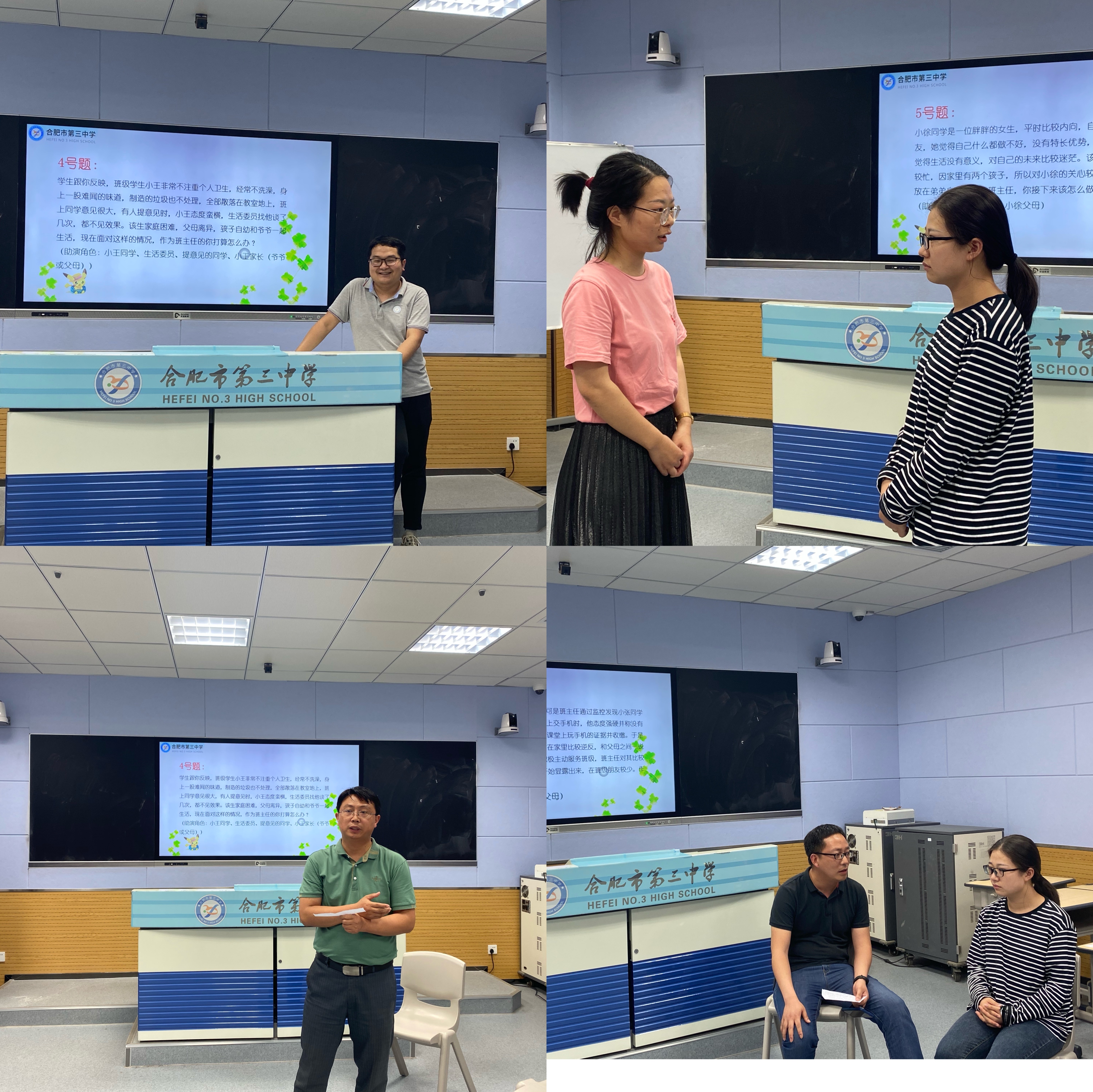 比赛特邀长三角班主任基本功大赛一等奖获得者合肥45中的宣宜蒙老师、合肥市班主任基本功大赛评委合肥五中的谢庆霞主任担任面试评委。赛后,评委们对班主任的现场表现进行了精彩点评并提出中肯的意见。通过专业点评,在场的每一位老师都更深刻地理解了班主任工作的专业性、复杂性和时代性,同时也更清晰地了解到个人自身的优势和不足。最重要的收获是促使每一位参赛者不断思考并相互取长补短,在以后的工作中能够学以致用。
