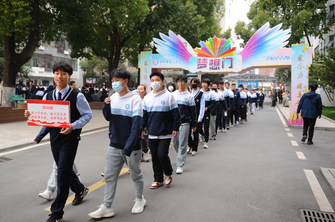 少年壮志,拼搏百日,各班学子高喊口号,昂首走过梦想之门,百日征沙场,一起向未来。