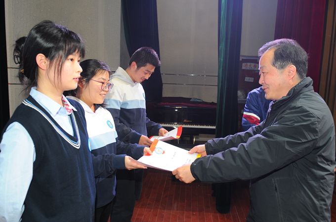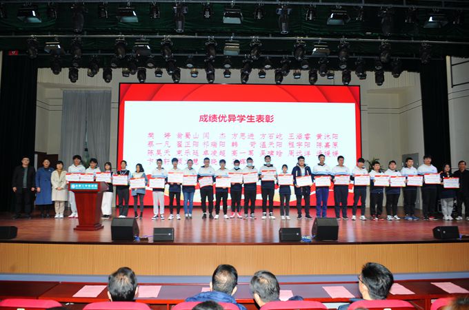 在正谊会堂现场,学校表彰了一大批成绩优异的学生,并为他们颁发奖状、合影留念。