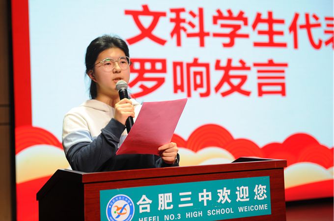 高三8班罗响同学、高三6班田用智同学分别代表全体高三年级学生发言,他们畅谈了自己的理想和备考计划,号召全体同学都要行动起来,珍惜最后99天的每分每秒,相信只要有坚定的信念、必胜的决心、合理的规划、科学的方法,就能夺取最终的胜利。