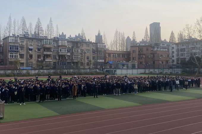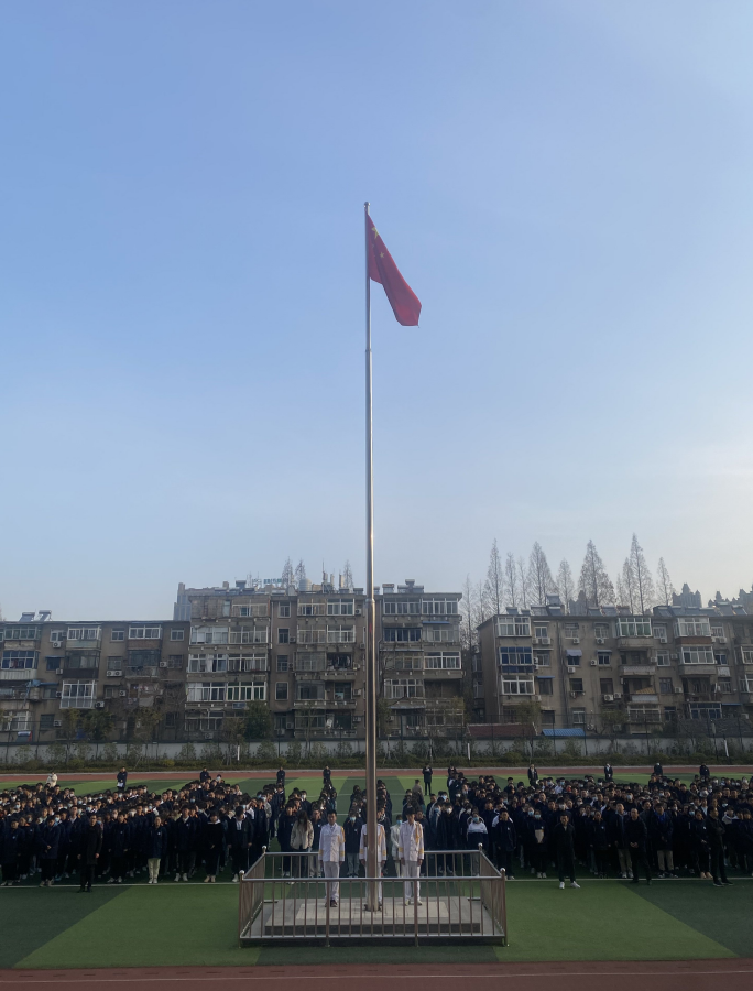 在雄壮嘹亮的国歌声中,鲜艳的五星红旗伴着朝阳缓缓升起,全体三中学子面向国旗行注目礼,在这庄严的时刻,同学们眼神坚定,整齐肃立,展现出三中学生的蓬勃朝气。