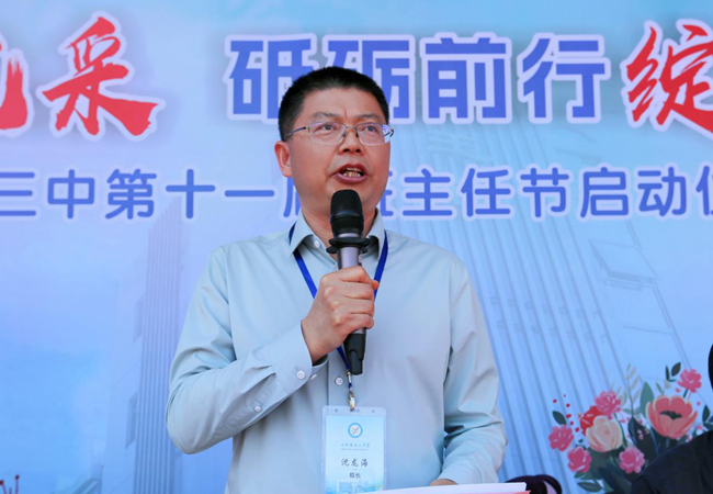 沈龙海校长给全体班主任送上了最诚挚的祝福。他对班主任的辛勤耕耘和无私奉献表达了感谢,并提出了两点希望:班主任老师一要塑师者之魂,乐做学生成长的引路人;二要修师者之德,成为学生的榜样。同时,他也希望全体同学常怀感恩之心,尊重、理解班主任。