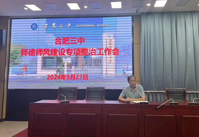 会议的第一阶段由全体中层以上干部参加。会上,马剑首先传达了市教育局《关于印发合肥市师德师风建设专项整治工作实施方案的通知》,审议通过了《点点手机版下载官网app师德师风建设专项整治工作实施方案》,并就专项整治工作作动员部署。马剑要求全体干部要从思想上认识此次活动的重要意义,严格按照教师职业道德要求自己,规范行为,恪守本分,保住底线,不碰红线,铸师魂,正师风,积极发挥榜样示范作用,共同营造清朗廉明的教育环境。