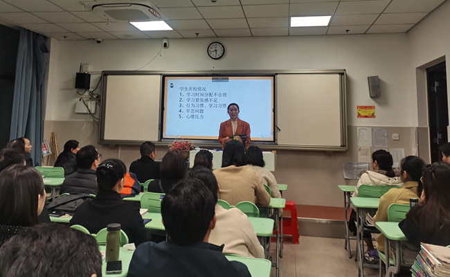 首先由班主任在各班教室就本班期中学情以及日常行为规范,向家长做了详细汇报,并从行为习惯、规则意识、能力培养、亲子关系、家庭教育和家校沟通等方面提出具体的建议,与家长共同探讨解决问题的办法。