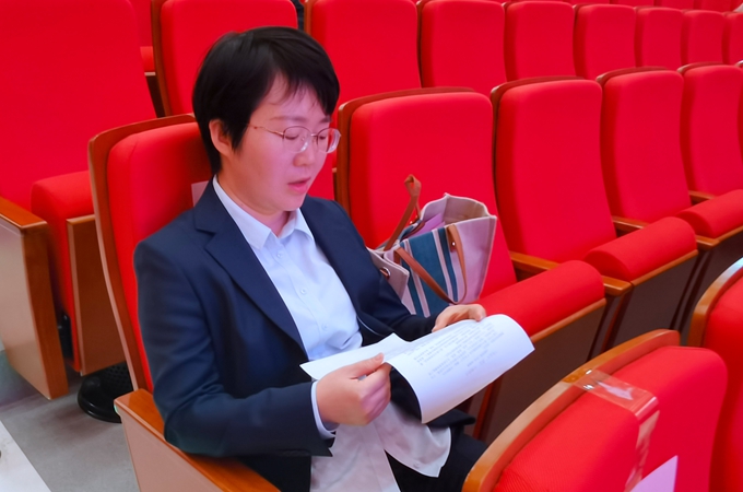 此次比赛安排在3月15日下午两点举行。学校工会主席吴思乡、工会女工委员黄文静陪同何海燕老师提前两小时来到比赛地点,熟悉比赛场地,抽取比赛顺序,温习演讲稿内容。