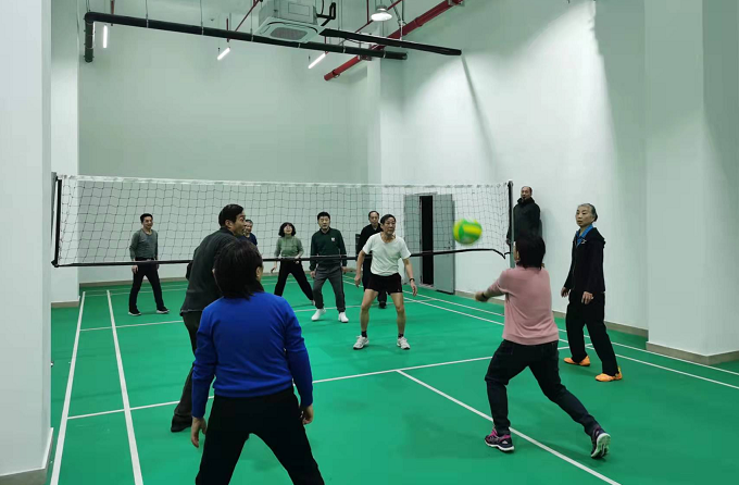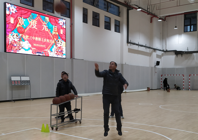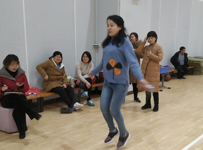 本次迎新年活动以体育运动为基础,融入教职工联欢活动,既有竞争性,又有趣味性。共设置定点投篮、实心球掷准、单人跳绳、软式排球、乒乓球、踢毽子、棋牌、歌咏等项目。