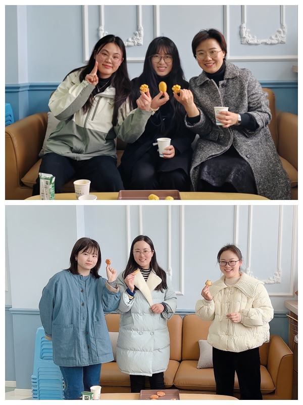 点心出炉烘焙室中弥漫着点心散发出的迷人香味,也充满了大家的欢声笑语和甜蜜喜悦。看着自己制作的点心,大家互相交流,制作体验和心得,对生活的热爱,不仅融入到烘焙作品中,也传递给身边的同事朋友。
