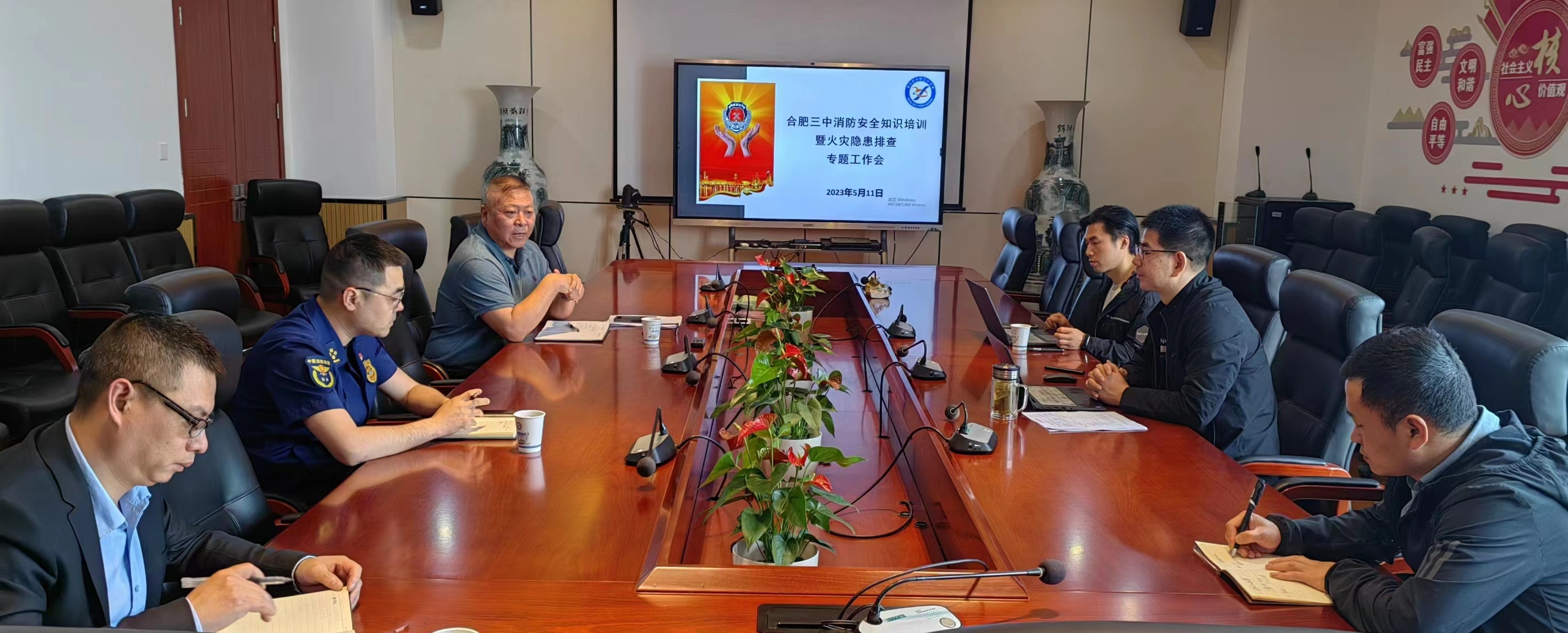 张黎明首先带领与会人员学习了《合肥市教育系统火灾隐患大排查大整治工作方案》《合肥市校园安全专项领导小组文件》,接着强调消防安全意识要提高、消防安全知识要学习、运用消防器材能力要提升。