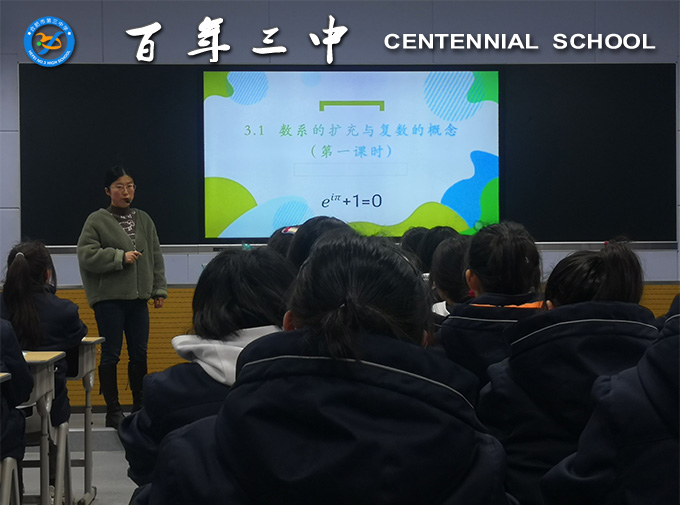 3月11日下午第一节课在录播室里,欧阳蓓蕾老师利用多媒体教学,进行了一节有关《数系的扩充与复数的概念》的公开课。她从古人“结绳”记事、“屈指”计数等故事引入对自然数的教学,再扩充到整数、有理数、实数,进而自然导入这节课的主题——复数。这堂课的教学,欧阳老师能从生活情景出发,使学生深切体会到数学源于生活的道理,有助于提升学生的数学抽象、逻辑推理素养。整个课堂情景创设生动有趣,教学环节简单高效,课堂气氛热烈活跃,充分展示了欧阳老师教学风采,也体现了她扎实的教学基本功。