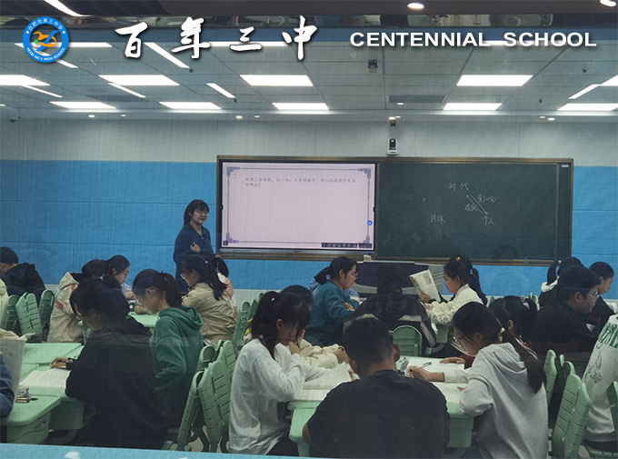 第一阶段是10月12日下午高一备课组的校内公开课展示,授课的是今年新进教师柴俊和杨芙蓉两位老师。柴俊老师执教的《时代漩涡中的人与诗》教授的是部编版必修上册第三单元第八课的三首唐诗,探寻时代与个人、探寻个人与诗体、探寻时代与诗体三个教学环环相扣,引人入胜,学生们聚精会神,踊跃发言。杨芙蓉老师上课的主题是《探讨生命感性的个性表达》,她从诗仙李白的《梦游天姥吟留别》和诗圣杜甫的《登高》开始上起,整堂课用三个活动“诵读回顾 初探诗人风格”“品诗论世 再探诗人个性”“比较诗体差异明晰诗人选择”贯穿。杨老师教态自然,笑容亲切,语言丰富,充分调动了学生的积极性,展现了老师良好的教学素养,整个课堂也是独具魅力。