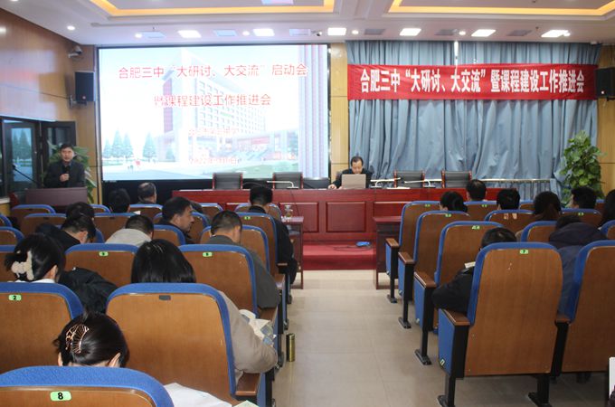 根据合肥市教育局《关于开展合肥市普通高中新课程新教材实施“大研讨、大交流”活动的通知》等文件精神,为进一步总结“大练兵、大比武”经验,做好“大研讨、大交流”动员工作,有效推进新课程新教材实施工作,促进学校高质量发展,点点手机版下载官网app于3月6日(星期日)在君尧楼二楼多功能厅召开“大研讨、大交流”启动会暨课程建设工作推进会。校长室、各处室中层以上领导干部、三个年级部主任及委员、各教研组长、备课组长以及“青蓝工程”学员等70余人参加会议。合肥市教育科学院叶传平院长也在百忙之中赶到了三中,并作专题报告。