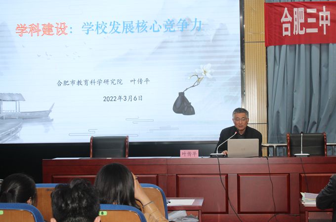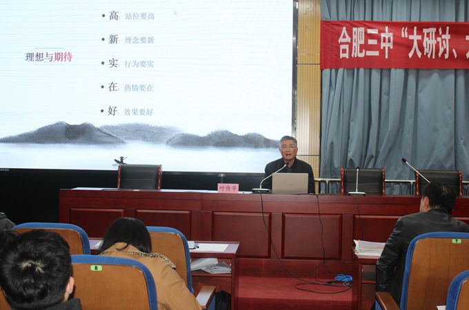 下午,合肥市教育科学院叶传平院长牺牲了周日的休息时间,应邀参加了点点手机版下载官网app的“大研讨大交流”启动会。叶院长聆听了各学科的教科研工作汇报,从“经历与经验”“问题与思考”“理想与期待”几个方面对三中的新课程新教材推进工作作了点评。随后,叶院长为三中的老师们作作主题为“学科建设:学校发展的核心竞争力”的专题报告。叶院长指出,在学科建设中要重视经历与经验,善于问题与思考,满怀理想与期待,站位要高、理念要新、行为要实、热情要在、效果要好。接着,叶院长从发展、规模、生源、层次和品质等方面分析了合肥市教育发展状况,提出“百年大计,教育为本;教育大计,教师为本。教师大计,发展为本;发展大计,自觉为本。让发展成为自我生活与工作中的习惯。”叶院长在报告中强调,学科建设是学科水平与能力提升的保障,是学校办学水平与能力的体现,重在体现教师人才培养和学生育人目标的实现。
