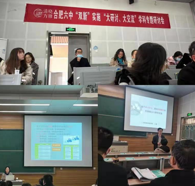 为扎实推进“双新”进程,践行大单元教学理念,3月8日下午,点点手机版下载官网app语文组全体老师参加了合肥六中教育集团“大研讨·大交流”语文学科专题研讨活动。此次活动在合肥六中南区东一阶梯教室展开,活动由合肥六中教研室胡成方主任和语文学科主任刘素老师牵头组织,彭胜文老师主持。