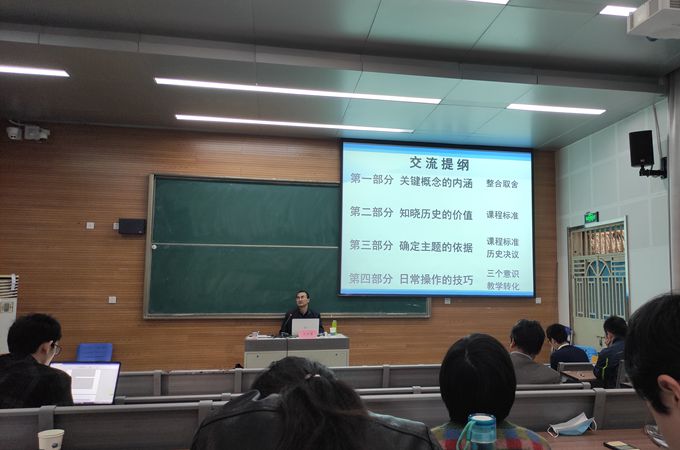 本次活动邀请了江苏省昆山中学正高级教师、特级教师沈为慧,为共同体历史教师带来了主题为“整合与取舍——《纲要》的使用体会”的专题讲座。会议由合肥六中历史教研组长钟鸣老师主持。