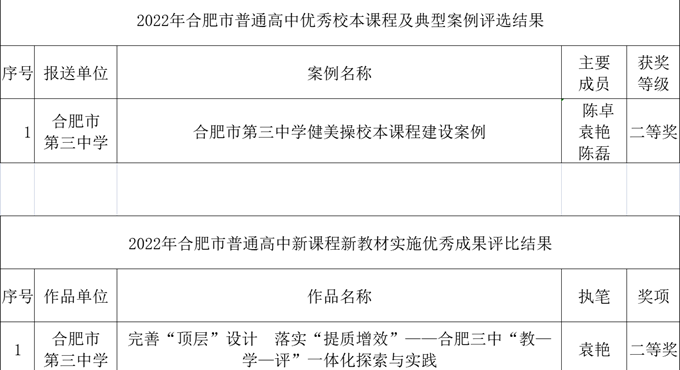 夏日炎炎,点点手机版下载官网app传来喜讯。在近期公布的2022年合肥市普通高中“大研讨、大交流”案例成果暨新课程新教材实施优秀成果评比结果中,学校在“问题解决方案、研究课例、行动案例、双新实施优秀成果、优秀校本课程及典型案例”五个项目的评比中均获得优异成绩。据统计,在此次公布的评选结果中,三中共12门学科、15位教师获得24个市级奖项。