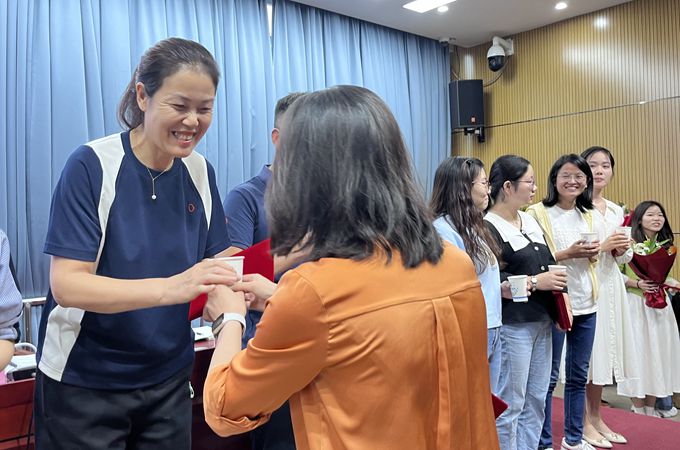 会议第二项,教学副校长陈卓宣布本次“青蓝工程”的聘任决定。陈校长在讲话中指出,新时代新课程给学校带来新的挑战和机遇,青年教师与指导教师都应拥有“大气象”,散发“大光芒”,明辨“大事理”,努力成长为“言为士则、行为世范”的好老师,“做学生为学、为事、为人的大先生,成为被社会尊重的楷模,成为世人效法的榜样”。