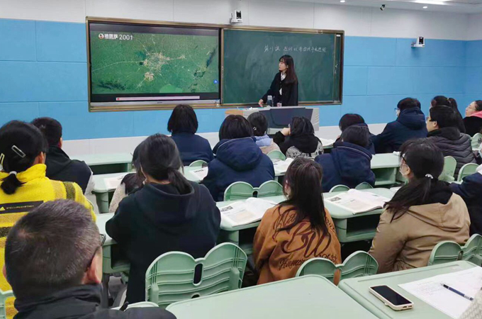 第二阶段是高二年级大单元教学校内公开课。4月7日上午第二节课,李梦老师展示了选择性必修二第11课《近代以来的城市化进程》。李梦老师首先以合肥市改革开放后卫星地图演变的视频导入新课,引导学生思考城市化的表现,并对“城市化”进行概念解读。随后,联系中外历史纲要下册第10课和选择性必修二第5、10课,帮助学生厘清工业化与城市化之间的关系,温故知新。通过多种类型的图表材料和文字材料,引导学生分析世界、英国、发展中国家和中国等不同维度下的城市化进程。接着从居住条件的改善和基础设施的发展等方面解读城市化的成就,并从人与自然和人与人之间的矛盾着手,分析城市化带来的挑战。最后结合《安徽省新型城镇化规划》,引导学生思考城市化问题的应对举措,以建设“大湖名城 创新高地”升华总结。